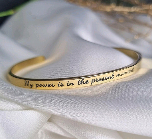Present moment stainless steel engraved bracelet